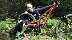 Mae beic mynydd y pencampwr Cymreig Emyr Davies yn werth £9,000, a mae ganddo straeon lu! Welsh mountain biking champion Emyr Davies puts Aled through his paces!