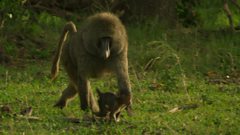 Bakari, the baboon, hasn’t a clue about baby care