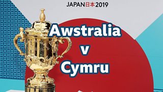 Sylwebaeth ar gêm Awstralia v Cymru yng Nghwpan Rygbi'r Byd.
