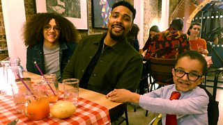 ![]()  Semi-Final Two: Day OneLiam Charles and Grace Dent judge the Kitchen Crew’s cooking.