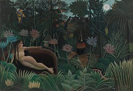 Henri Rousseau, The Dream, 1910. Oil on canvas, 6' 8 1/2" x 9' 9 1/2" (204.5 x 298.5 cm). Gift of Nelson A. Rockefeller. Museum of Modern Art, NY, 252.1954