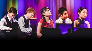 1/8 Five young musicians compete in the keyboard final for a place in the semi-final.