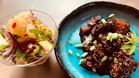 Sticky Ginger Pork with Pineapple, Chilli and Mint Salad