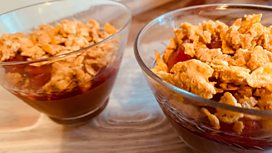 ![]() - Chocolate Pots with Plum Compote, Candied White Chocolate and Cornflake Crumble- A heavenly summer dessert