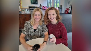 Hanna Hopwood a'i gwesteion sy'n trafod sut mae coffi yn gallu gwneud bywyd yn haws.
