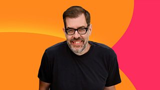 Richard Osman sits in