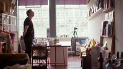 Joe Lycett in his art studio with 'Chris'