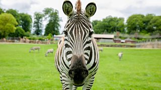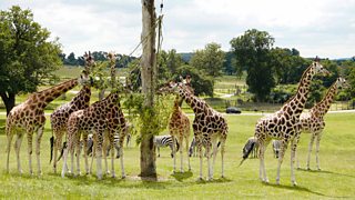 13/15 Kate Humble attempts a speed test on a pair of cackling hyena.