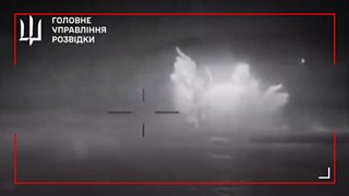 21/50 The moment a Ukrainian drone destroys a Russian warship in the Black Sea.