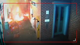 26/50 The moment an e-bike sets into flames at Sutton train station in rush hour.