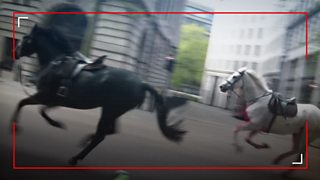 45/50 Three military horses escape and run through the streets of London.