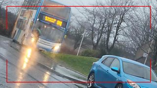 12/50 A double-decker bus smashes into multiple cars after skidding and spinning on an icy road.