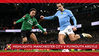 Highlights of the FA Cup fifth-round match between Manchester City and Plymouth Argyle.