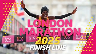 Watch the live stream of the finish line at the 2025 London Marathon.