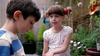 Mummy gives Topsy and Tim some sunflower seeds to grow in their garden.