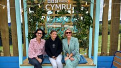 Mae Jennifer yn darlledu o faes Eisteddfod Genedlaethol Wrecsam, ac yn sgwrsio gydag Elen Mai Nefydd a'i merch Gwen, ill dwy yn fam a merch o fro'r Eisteddfod.