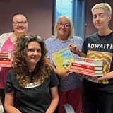 Mae Ffion yn cael cwmni Clwb Darllen y rhaglen sef Bethan Pari Jones, Heledd Hulson a Kayley Roberts.