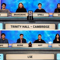 The first round of the competition continues. Trinity Hall, Cambridge and the London School of Economics are the teams facing their first starters for ten. Amol Rajan asks the questions.