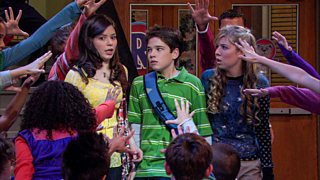 The gang make Gibby and his crush contestants in an 'iWin A Date' segment on the show.