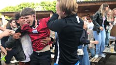 Celebrating England's win in Newquay!