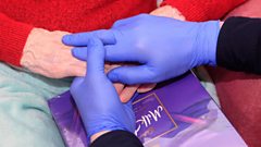Husband and wife hold hands for the first time in a year