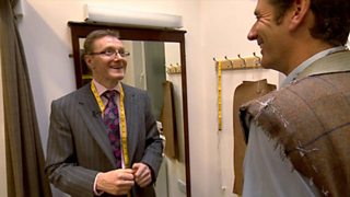 Dougie Vipond gets measured up for a new jacket using the Landward tweed.