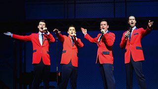 The cast of Jersey Boys perform at Radio 2's Stand Up for Pudsey, from the Prince Edward Theatre in London.