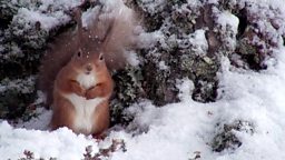 Need cheering up on a cold winter’s day? Here’s a red squirrel having a nibble in the snow