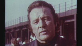 Burton on the set of ‘Villain’ where he records a film for the National Coal Board.