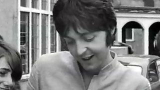 News film showing The Beatles in Bangor for a conference on Transcendental Meditation.