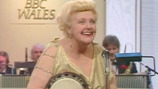 Tessie O'Shea playing the banjo in a live performance of "Two ton Tessie."