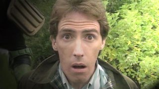 A young Rob Brydon meets Judge Dredd at the 1992 National Garden Festival at Ebbw Vale.