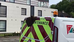 Swarm of bees rest on work van