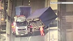 Overturned lorry on Forth Road Bridge