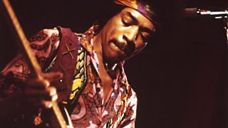 Jimi Hendrix performs in session, recorded in 1969.