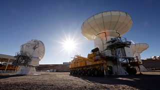 A giant telescope antenna is transported up a 16,500 foot high mountain in Chile.