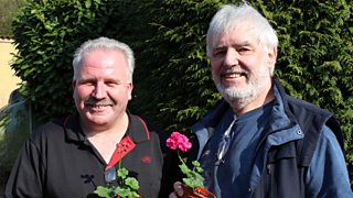Filby villagers, Adrian and Keith, are waiting for the Britain in Bloom Judges to arrive.