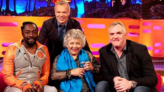 Graham's guests line up to show us the difference in their heights.