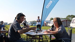 Dafydd a Caryl yn darlledu o faes carafanau Eisteddfod Bro Morgannwg 2012.