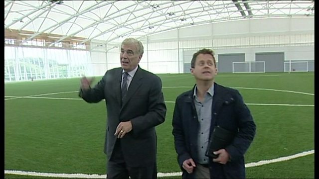 Sir Trevor Brooking gives Mike Bushell a tour around the FA's new training centre at St George's Park.