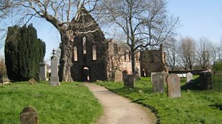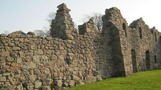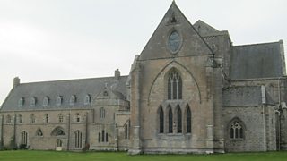 Coinneach agus Ruairidh MacIlleathain aig t-seann Abaid a' Mhanachainn.