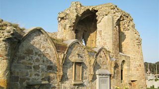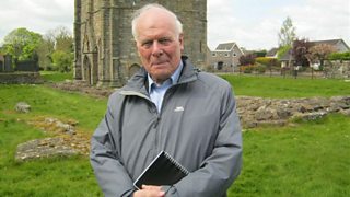Coinneach ann an t-seann Abaid Chirceabol air Eilean Thiriodh còmhla ri Dòmhnall Meek.
