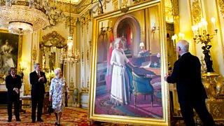 The Queen unveils her portrait by Phil Richards