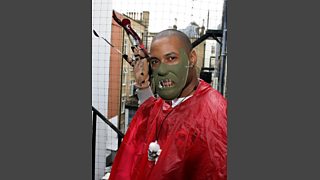 As part of Ace and Vis' quest to become pro-wrestlers, Vis was given a makeover to transform into Volatile Vis. It's amazing what you can do with plastic cutlery!