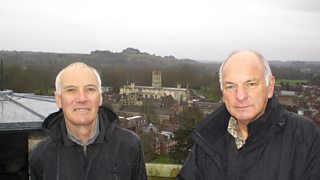 Jeff Steer guides Neil Sackley on a tour of Winchester Cathedral's tower