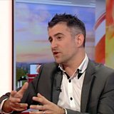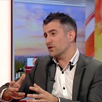 Astronomer Mark Thompson brings a meteorite into the studio