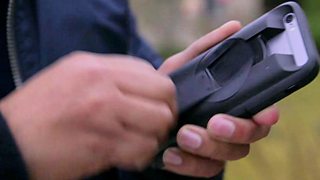 Testing the smartphone case with a built-in hand crank