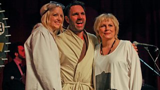 Shaun Keaveny and slap-bass superstar Mark King drop some live Middle Age Shout Outs at Shaun's Red Nose Day party in the ÃÛÑ¿´«Ã½'s Radio Theatre.