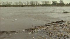 Case study of floods in the middle course of the River Severn from the Gloucester area in January 1995. Shows farms and roads under water, the river in Gloucester turned into a massive lake and effects on residents of the area, who are shown scrambling for sand bags and trying to leave their houses.