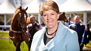 Clare Balding watches HM the Queen as she visits some recently born foals at Sandringham.
